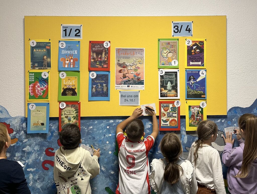 Am Freitag, 24.10.25 fand unser diesjähriger Frederick-Tag statt. Alle Kinder durften sich ein Wunsch-Leseprojekt zu einem Kinderbuch aussuchen und dazu vielfältige Eindrücke sammeln. Bald gibt es in unserer Bildergalerie eine Auswahl an Bildern zu den einzelnen Projekten. Es wurde gelesen, gemalt, gebastelt und gebacken. Alles zum jeweiligen Thema des Buches. Es war für alle ein toller Tag!